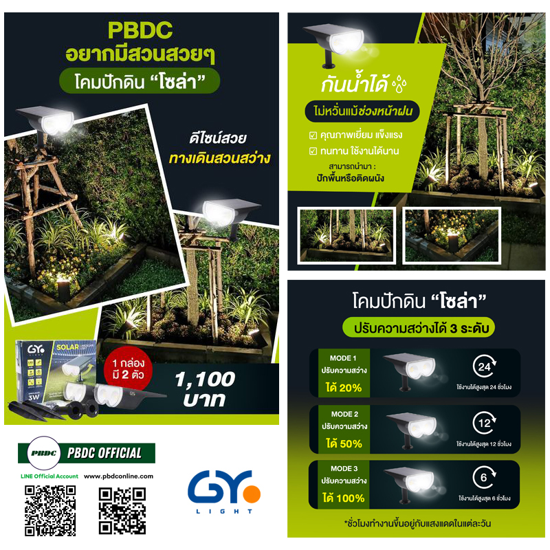 วันนี้นั้นทาง PBDC Online ขอแนะนำโคมไฟส่องต้นไม้โซล่า เซลล์ รุ่น LS-02 ของยี่ห้อ GY light เพราะไฟโซล่า เซลล์ตัวนี้นั้น ต้องบอกเลยว่า ประสิทธิภาพดีมากๆ สามารถเปลี่ยนสวนธรรมดาๆให้กลายเป็นรีสอร์ทหรู 5 ดาวได้เลยทีเดียว