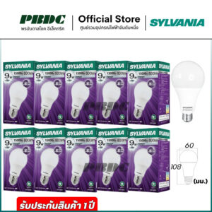 Sylvania หลอดไฟแอลอีดี 9วัตต์ LED Bulb Basic plus A60 ขั้วE27 Daylilght แสงขาว Warmwhite แสงเหลือง [10 หลอด]
