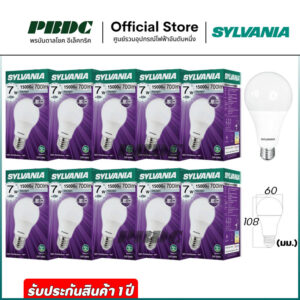 Sylvania หลอดไฟแอลอีดี 7วัตต์ LED Bulb Basic plus A60 ขั้วE27 Daylilght แสงขาว Warmwhite แสงเหลือง [10 หลอด]