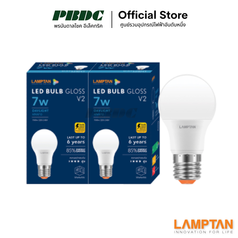 จำนวน หลอดไฟแอลอีดี LED Bulb รุ่น Gloss V2 7W (แพ็ค1แถม1) ชิ้น