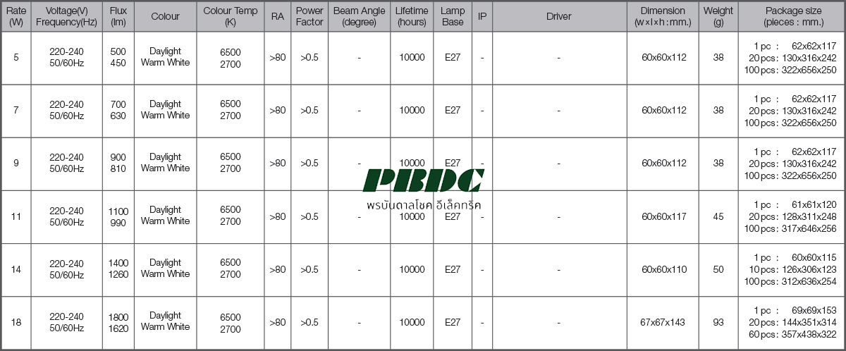 Lamptan หลอดไฟแอลอีดี LED Mercury 60W Daylight แสงขาว ขั้ว E40