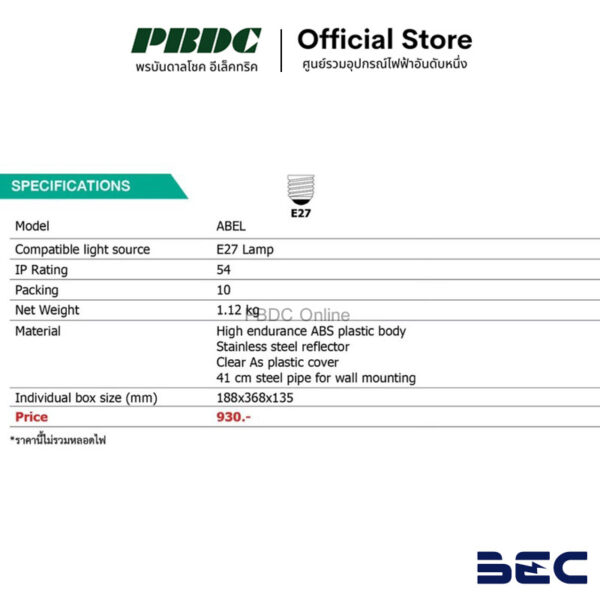โคมไฟติดผนัง E27 รุ่น Abel พร้อมขายึด
