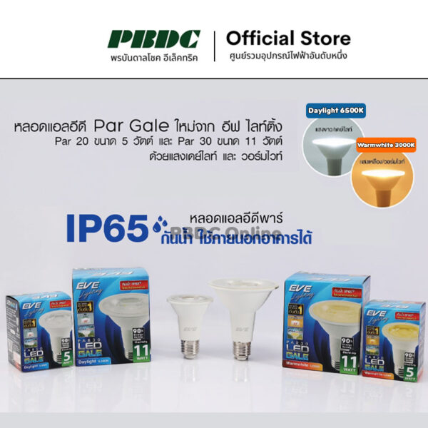 Eve หลอดไฟแอลอีดี รุ่น Gale Par20 5วัตต์ Par30 11วัตต์ Daylight แสงขาว Warmwhite แสงเหลือง IP65