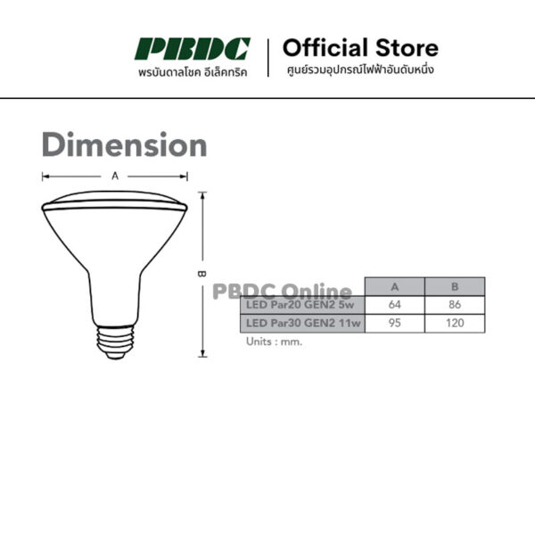 ตัวเลือก | Par20 (5วัตต์), Par30 (11วัตต์) |