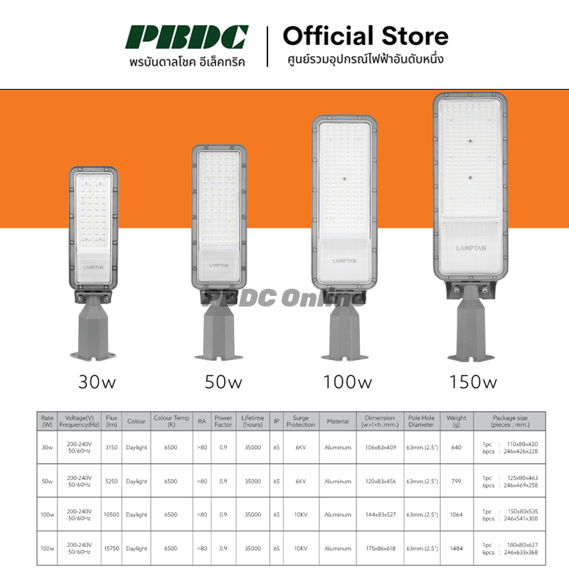 จำนวน Lamptan โคมไฟถนนแอลอีดี รุ่น Tank 30W 50W 100W 150W 220V ไฟบ้าน ชิ้น