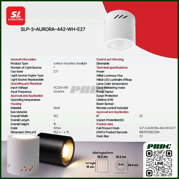 • ใช้หลอดมาตราฐาน ขั้วE27