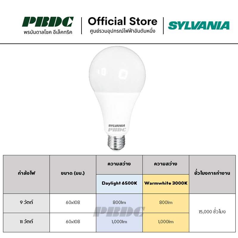 • ขั้วหลอดไฟ E27 • ความสว่าง 1100lm • อายุการใช้งาน 15,000 ชั่วโมง • แสงขาว 6500k / แสงเหลือง 2700k • ขนาด 60×108 มม.