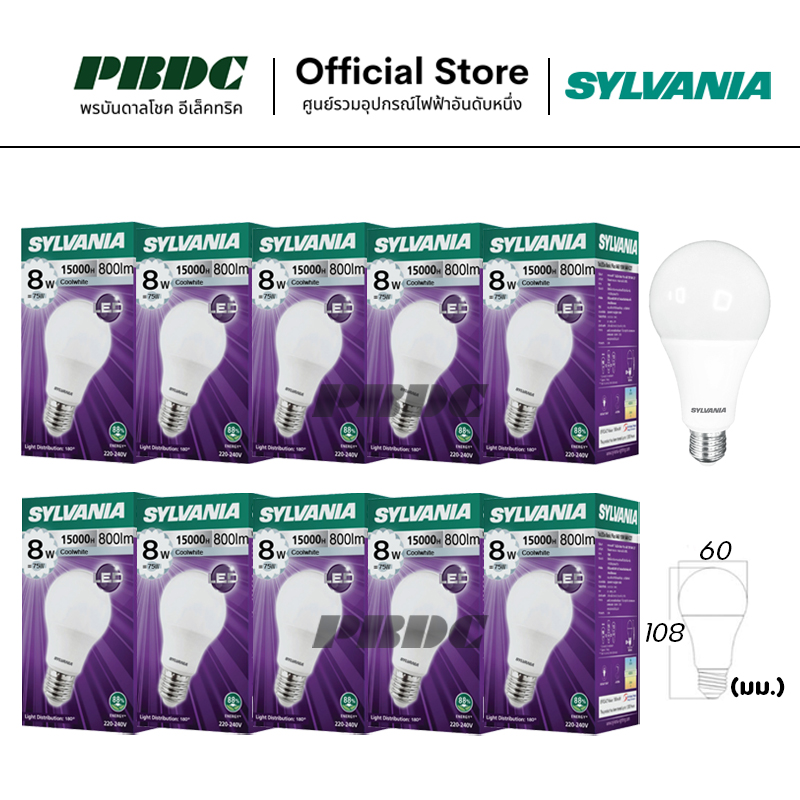 • ขั้วหลอดไฟ E27 • ความสว่าง 800lm • อายุการใช้งาน 15,000 ชั่วโมง • Coolwhite 4000k • ขนาด 60×108 มม. • 10หลอด